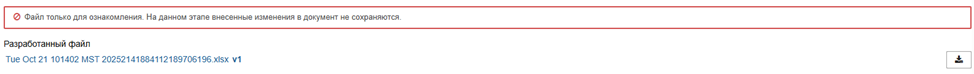 Активируется после запуска процесса разработки (после заполнения карточки “Задание на разработку” и нажатия кнопки “Сохранить и запустить процесс разработки”)
