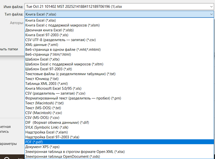 Выбрать формат PDF