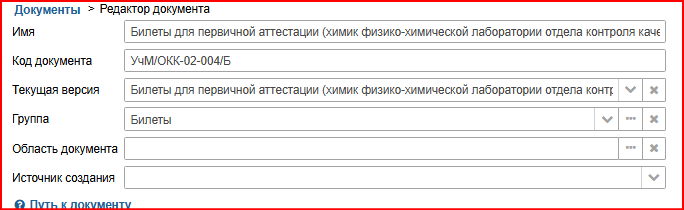 Группа для документа – где будет сохранен разработанный документ. Для выбора группы необходимо нажать кнопку выбора. В открывшемся списке выбрать группу и нажать кнопку «Выбрать».